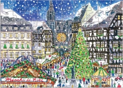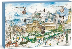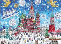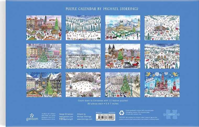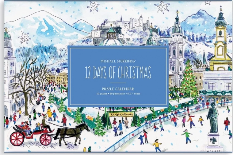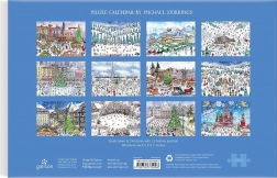 Ten oryginalny kalendarz adwentowy łączy świąteczną oprawę z relaksującą zabawą dla małych i dużych. Po wysunięciu zewnętrznej obwoluty ukazuje się wewnętrzna płyta z 12 okienkami, za którymi kryją się ilustrowane puzzle. Każdy motyw oddaje ducha Świąt na całym świecie charakterystyczną kreską Michaela Storringsa.
