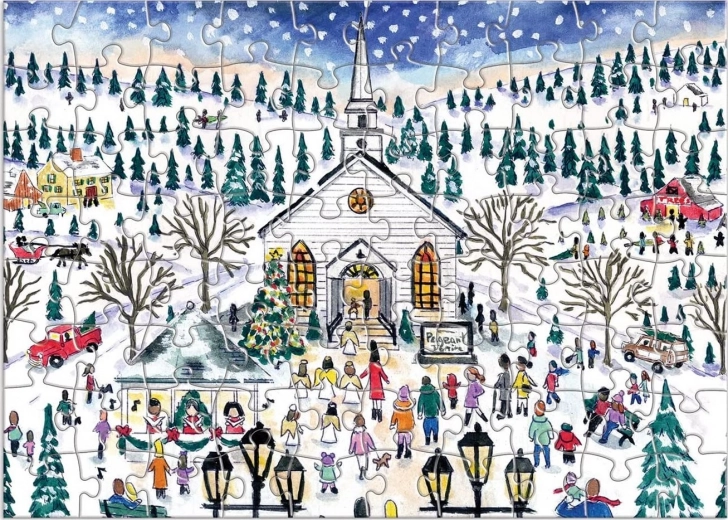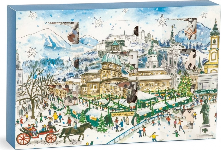 Otwieraj 12 ponumerowanych okienek i każdego dnia układaj nowy zimowy motyw. Każde puzzle mają 80 elementów i te same wymiary, co sprzyja codziennemu układaniu.