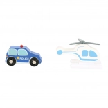 Radiowóz, helikopter, 2 figurki, elementy wnętrza