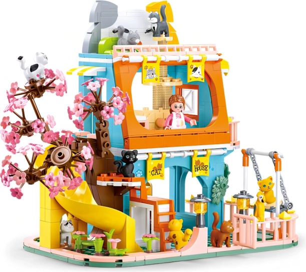 Zanurz się w świecie fantazji z tym zestawem klocków Sluban Dom z Kotami. Idealny dla dziewczynek, które spędzą godziny na zabawie składając i bawiąc się figurkami oraz zwierzątkami.