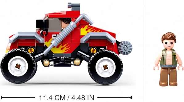 Czerwony pojazd terenowy z szerokimi oponami, płomiennymi naklejkami i minifigurką zapewnia godziny kreatywnej zabawy. Zestaw jest idealny dla dzieci, które kochają dynamiczną jazdę w terenie i budowanie z klocków. Wysokiej jakości plastik ABS gwarantuje trwałość i bezpieczną zabawę.