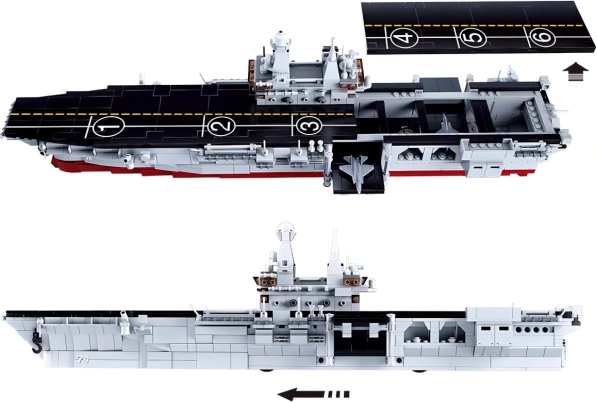 Ten realistyczny zestaw konstrukcyjny lotniskowca w skali 1:450 zapewnia godziny budowania oraz atrakcyjny model do ekspozycji. Na pokładzie znajdziesz oznaczone strefy lądowania, wieżę dowodzenia i dopracowane detale. W opakowaniu są różne typy samolotów i helikopterów do dynamicznych scenariuszy na morzu i w powietrzu.