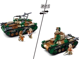 Poznaj historyczną technikę dzięki modelom inspirowanym prawdziwym czołgiem średnim Typ 97, najpowszechniejszym czołgiem Cesarskiej Armii Japonii w trakcie II wojny chińsko-japońskiej. Ten zestaw umożliwia zbudowanie dwóch różnych modeli (2w1), co zwiększa frajdę i różnorodność zabawy.