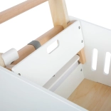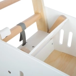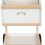 Ten dziecięcy wózek zakupowy jest wykonany z solidnego drewna i jest wyposażony w gumowane kółka dla cichego i gładkiego ruchu. Podobnie jak w prawdziwym supermarkecie, można skorzystać z magnetycznego żetonu w uchwycie. Wózek oferuje przestronny koszyk na różne przedmioty oraz dodatkową przestrzeń do przechowywania na dole.