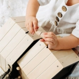 • Wysokiej jakości materiały – połączenie drewna, plastiku, pluszu i tkanin dla długiej trwałości.