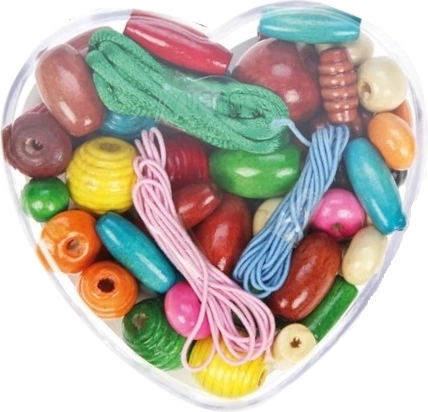 Zapewnij swojemu dziecku możliwość rozwijania kreatywności i zdolności manualnych dzięki drewnianym koralikom Lena. Zestaw zawiera kolorowe koraliki o różnych kształtach i wielkości 9,5 mm, które są przechowywane w małym przezroczystym serduszku wraz z trzema sznureczkami do nawlekania.
