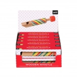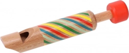 Wesołe tęczowe paski zapewniają, że piszczałka przyciągnie każde dziecko.