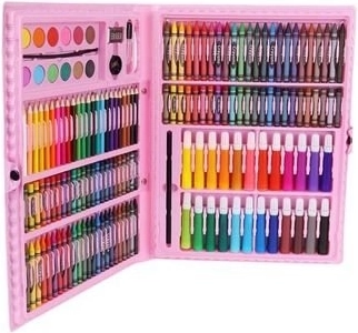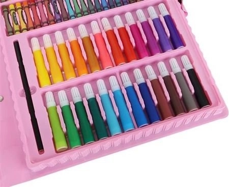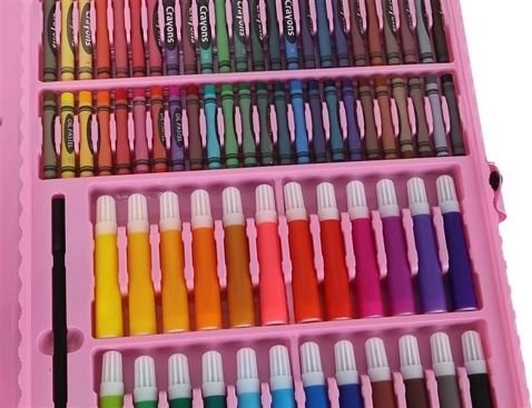 Ten bogato wyposażony zestaw oferuje wszystko, czego dzieci i początkujący artyści potrzebują do rozwijania wyobraźni i małej motoryki. 168 elementów starannie ułożonych w solidnej walizce gwarantuje porządek, szybki wybór kolorów i wygodne przenoszenie. Odpowiedni dla dzieci od 3 lat.
