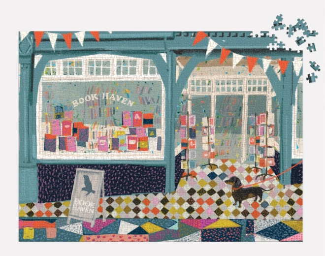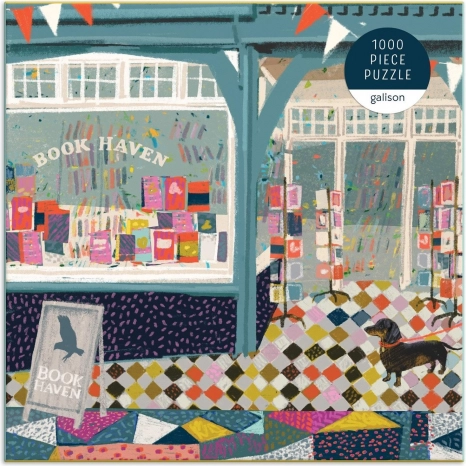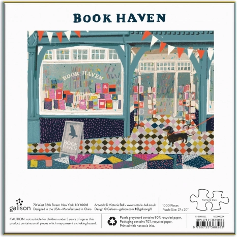 Galison puzzle Book Haven 1000 elementów z ilustracją Victorii Ball. Matowe wykończenie, materiały z recyklingu, solidne prezentowe pudełko i arkusz podglądowy.