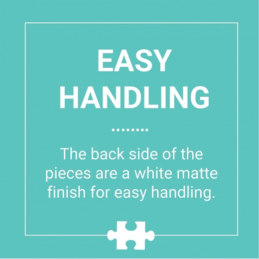 Puzzle powstały z troską o środowisko – użyto papieru i tektury z recyklingu, a całość zapakowano w wyjątkowo wytrzymałe, estetyczne pudełko z materiałów zrównoważonych z certyfikatem FSC. Gładka tylna strona elementów ogranicza powstawanie pyłu podczas przechowywania rozłożonych puzzli.