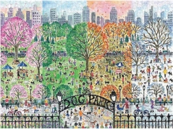 Szczegółowa i żywa ilustracja psiego parku w czterech porach roku zapewnia wciągające wrażenia wizualne i motywuje do układania.