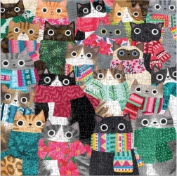 Odkryj radość układania puzzli, które zachwycą miłośników kotów i wysokiej jakości wykonania. Motyw zimowo wystylizowanych kocich przyjaciół w ciepłych szalikach wyróżnia się dzięki doskonałemu nadrukowi nietoksycznymi farbami oraz matowemu wykończeniu, które eliminuje odblaski i podkreśla subtelne detale.