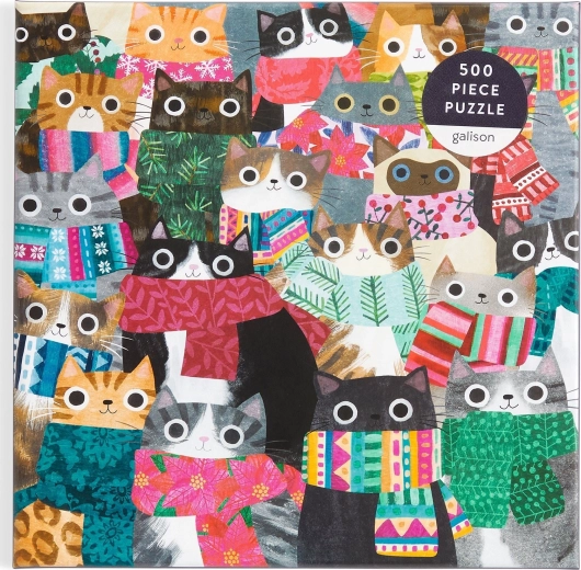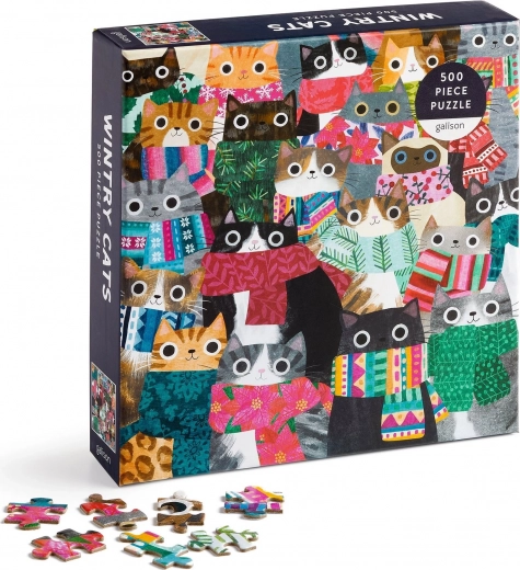 Ciesz się relaksującymi chwilami z oryginalnymi puzzlami, na których widnieją zimowe koty w kolorowych szalikach autorstwa artystki Angeli Rozelaar. Zestaw zawiera 500 precyzyjnie wyciętych elementów z matowym wykończeniem, które zapewnia wierne kolory i detale. Wykonany jest z papieru z recyklingu i zapakowany w solidne, wielokrotnego użytku pudełko z certyfikatem FSC.