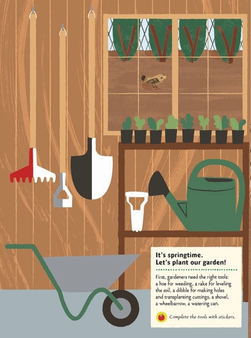 Mali ogrodnicy nauczą się rozpoznawać różne gatunki warzyw i owoców, dowiedzą się, jak je prawidłowo sadzić, podlewać i pielęgnować, a także jakich narzędzi do tego potrzebują. Dzięki naklejkom i quizowi nauka jest atrakcyjna, motywująca i pełna odkryć.
