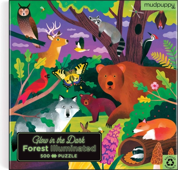 Ułóż magiczną leśną scenę z puzzlami MUDPUPPY składającymi się z 500 elementów, które po zgaszeniu światła świecą w ciemności. Wysoka jakość wykonania z papieru z recyklingu, precyzyjny wykrojnik oraz matowe wykończenie dla wiernych kolorów i detali. W zestawie znajduje się obrazek pomocniczy oraz wytrzymałe sztywne pudełko ułatwiające przechowywanie. Ilustracje: Kaley McKean.