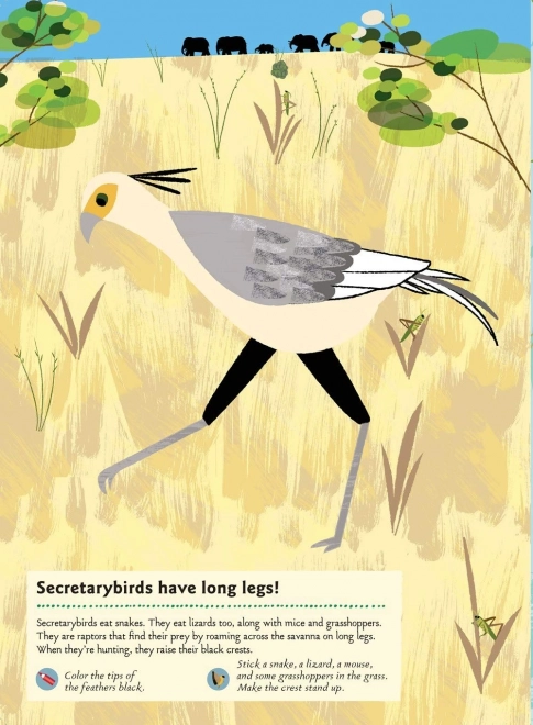 Odkryj świat sawann z interaktywną książką pełną zabawy! Czeka na Ciebie 57 naklejek, 32 sprytne aktywności oraz quiz, które przybliżą dzieciom egzotyczne zwierzęta, takie jak zebry, żyrafy, hipopotamy czy surykatki. Książka jest w języku angielskim i oferuje piękne ilustracje autorstwa Olivia Cosneau.