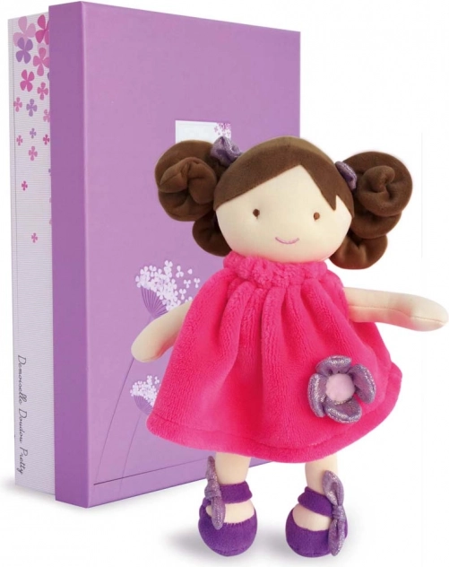 Przy wysokości 28 cm ta lalka jest idealna dla małych dzieci od urodzenia. Wykonana z wysokiej jakości materiałów, które zapewniają bezpieczeństwo i komfort. Dziecko może ją posadzić i bawić się jej ciemno brązowymi kręconymi lokami, zaprojektowanymi do stylizacji.