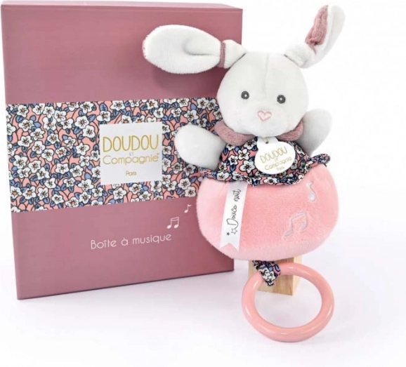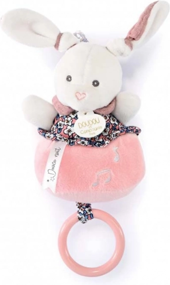 Uroczy różowy króliczek z zestawu prezentowego DOUDOU jest nakręcany i odtwarza kojącą melodię, która towarzyszy maluszkowi w zasypianiu. Delikatny plusz, kołysanka i stylowe pudełko prezentowe sprawiają, że to idealny prezent dla noworodka.