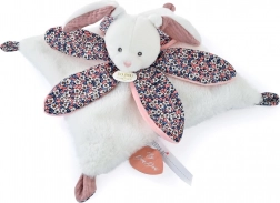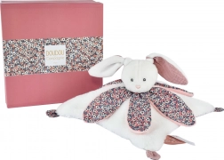 Ten uroczy doudou z główką króliczka i mięciutkim kocykiem daje niemowlęciu poczucie bezpieczeństwa, miękkość oraz subtelne bodźce wspierające rozwój zmysłów. Jedna strona jest z ultramiękkiego pluszu, druga z świeżo drukowanej bawełny zaprojektowanej przez stylistów, która zachwyca wzrokiem i dotykiem.