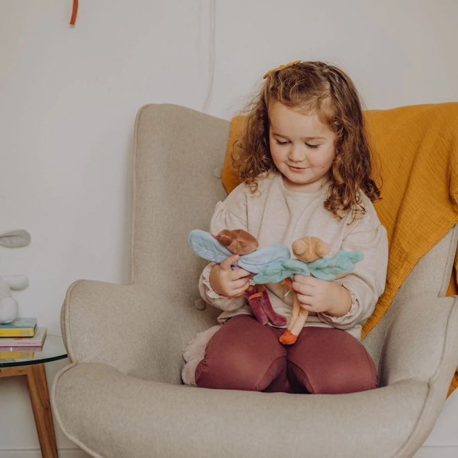 Poznajte laleczkę Tara – delikatną motylią wróżkę w fioletowej sukience, z niebieskimi skrzydłami i stylowymi dodatkami. Dzięki miękkim materiałom jest idealna do przytulania i pierwszych zabaw dla najmłodszych. Haftowane detale buzi zapewniają bezpieczeństwo bez małych elementów.