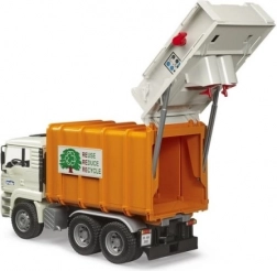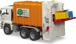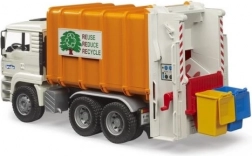 Realistyczna śmieciarka BRUDER MAN TGA w skali 1:16 zachwyci małych i dużych fanów techniki. Ma odchylaną kabinę, działającą prasę z podwójnymi przenośnikami ślimakowymi, otwierane tylne drzwi z blokadą oraz dwie dołączone kosze na śmieci. Wykonana z wytrzymałego plastiku ABS w Niemczech, kompatybilna z figurkami Bworld i idealna dla dzieci od 3 lat.