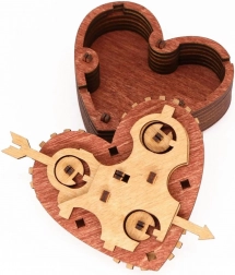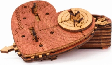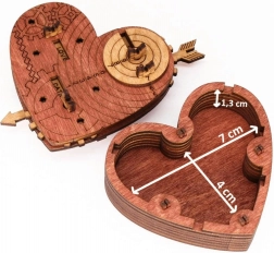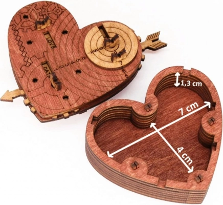 To stylowe serce z trybikami i grawerunkiem skrywa sprytny mechanizm kodowy. Po ustawieniu właściwych trzech słów wystarczy pociągnąć za strzałkę, a wieczko się otworzy. Serce możesz wykorzystać jako bezpieczne opakowanie na drobiazg, osobistą wiadomość lub jako designerską łamigłówkę do ekspozycji.
