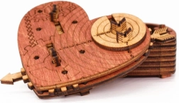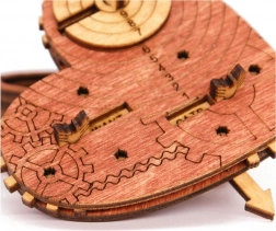 Precyzyjne grawerowanie, zębate elementy i warstwowa konstrukcja czynią z łamigłówki stylowy dodatek oraz wytrzymałe opakowanie prezentowe.