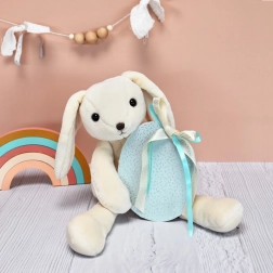 Ten duży królik może służyć jako przyjaciel, poduszeczka lub dekoracja pokoju dziecięcego. Wykonany z premiowego miękkiego pluszu i spełnia wszystkie europejskie normy CE. Idealny jako prezent na Boże Narodzenie lub na uroczystość narodzin niemowlęcia.