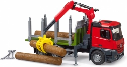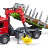 Bruder transporter drewna jest wyposażony w obrotowy żuraw i chwytak, co umożliwia łatwe i efektywne załadunek i rozładunek kłód.
