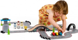 • 47-częściowy zestaw z drewnianymi elementami drogowymi