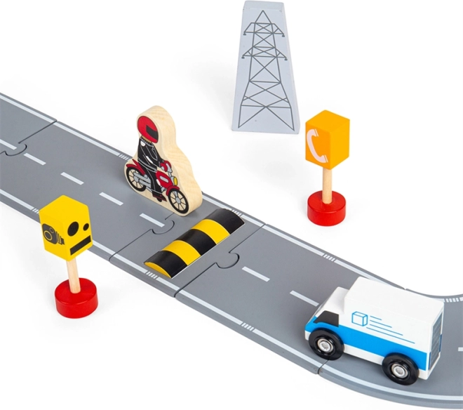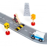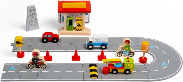 Przedstawiamy wspaniały drewniany zestaw drogowy, który zapewni Twojemu dziecku nieograniczone możliwości zabawy. Zestaw zawiera 25 elementów, w tym drewniane odcinki drogi i akcesoria, które można łączyć z innymi zestawami Bigjigs Rail lub innymi drewnianymi zestawami drogowymi. Wykonany z wysokiej jakości materiałów z odpowiedzialnych źródeł, spełnia wszystkie europejskie normy bezpieczeństwa.
