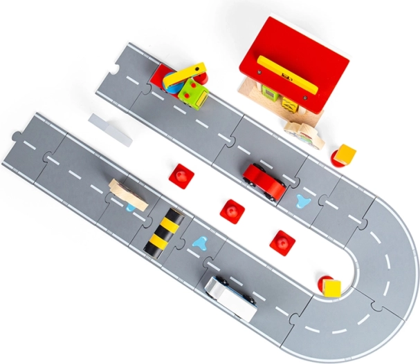Zestaw umożliwia tworzenie różnych scenariuszy drogowych, rozwijając kreatywność i wyobraźnię dzieci.