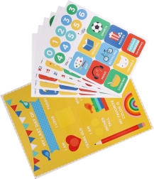 Zestaw zawiera 97 kolorowych naklejek z różnymi symbolami, cyframi i motywami, które przyciągną i zmotywują dzieci.