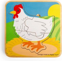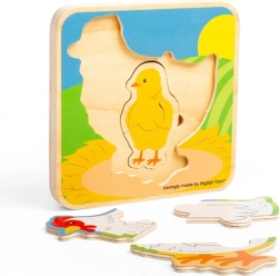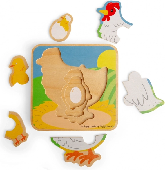 Odkryj zabawne i edukacyjne drewniane puzzle przedstawiające cykl życia kury – od jajka aż po dorosłą kurę. Idealne do rozwoju motoryki małej, koordynacji oko–ręka i myślenia logicznego. Wysoka jakość wykonania z odpowiedzialnie pozyskiwanego drewna, piękne kolory i bezpieczne wykończenie dla dzieci od 1,5 roku.