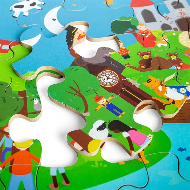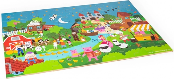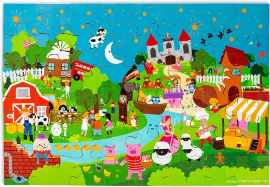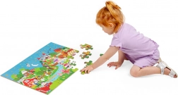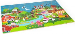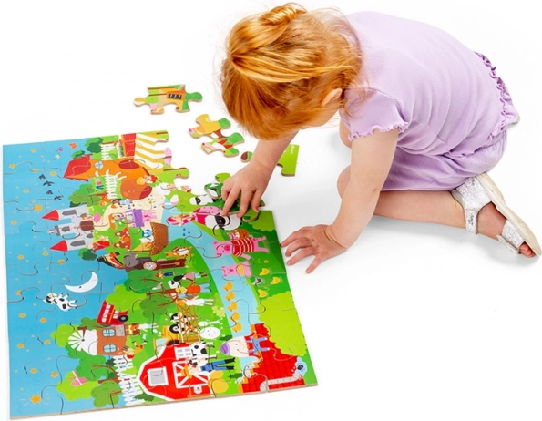 Te kolorowe puzzle podłogowe składające się z 48 elementów zapraszają dzieci do świata fantazji. Każda ilustracja inspiruje do tworzenia własnych bajek, co naturalnie rozwija umiejętności językowe oraz interakcje społeczne między dziećmi a rodzicami. Duże, solidne elementy są łatwe do chwytania i świetnie do siebie pasują.