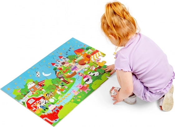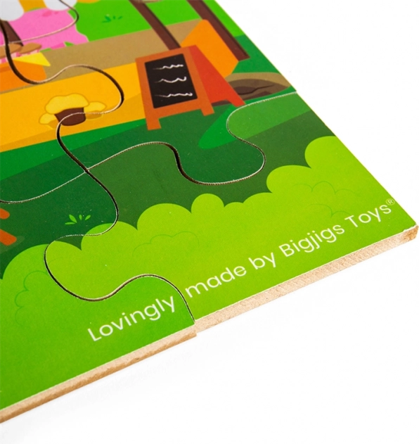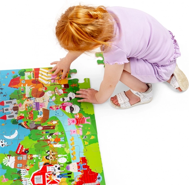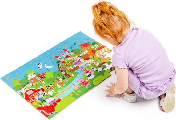 Wykonanie z wysokiej jakości drewna z odpowiedzialnych źródeł oraz powierzchnia z intensywnymi kolorami zapewniają długą żywotność i bezpieczną zabawę. Puzzle są idealne dla dzieci od 2 lat – do pierwszego układania na podłodze, rozwijania koncentracji i cierpliwości.