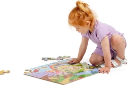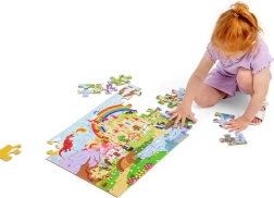 Podłogowe puzzle Bigjigs Toys Fantasy świat zapewniają dzieciom radosne wejście do krainy magii i nadprzyrodzonych istot. Duże, łatwe do chwytania elementy z solidnego drewna ułatwiają układanie, rozwijają koordynację ręka–oko oraz uczą rozpoznawania kolorów i kształtów. Idealne pierwsze większe puzzle dla małych odkrywców.
