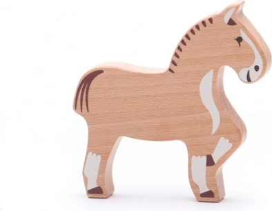 Urocza drewniana figurka konia z drewna bukowego jest idealna dla małych dziecięcych rączek. Wspiera kreatywną zabawę, jest bezpieczna, trwała i wykonana z naturalnych materiałów z naciskiem na bezpieczeństwo zdrowotne.