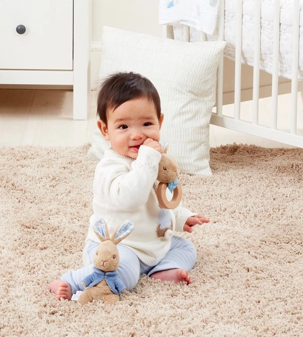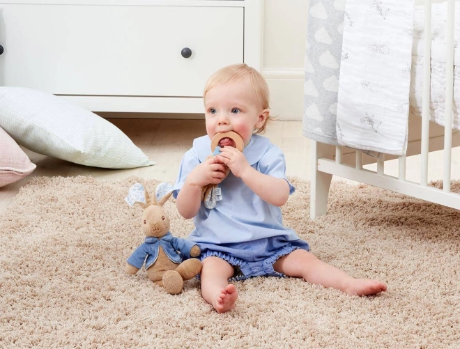 Ta stylowa grzechotka i gryzak z króliczkiem Peter Rabbit wspiera wczesny rozwój dziecka dzięki stymulacji sensorycznej. Łączy miękki, przyjemny plusz ze 100% bawełny oraz solidny drewniany pierścień z odpowiedzialnych źródeł, który dobrze leży nawet w drobnych dziecięcych rączkach.