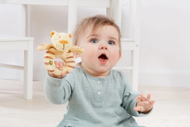 Pluszowa grzechotka Tygryska została zaprojektowana z myślą o bezpieczeństwie najmłodszych i nadaje się od urodzenia.