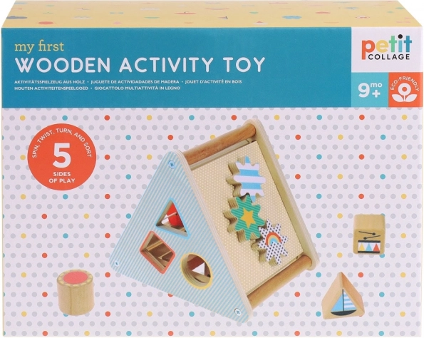 Drewniana zabawka od marki Petit Collage oferuje bogate możliwości zabawy, wspierające rozwój logiki dziecka, drobnej motoryki oraz rozpoznawania kolorów. Dzięki obracaniu kół zębatych i wkładaniu kształtów dzieci poprawiają swoje praktyczne umiejętności i koordynację ręka-oko.