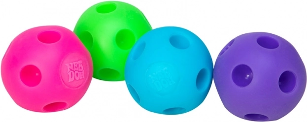 NEE DOH Happy Snappy to zabawka sensoryczna, która bawi i uspokaja. Po ściśnięciu wypełnionej powietrzem kuli wklęsłe otwory wysuwają się i z delikatnym „pstryknięciem” wracają, co przynosi natychmiastowe rozluźnienie napięcia oraz satysfakcjonujące doznania dotykowe i dźwiękowe. Dzięki trwałemu, nietoksycznemu materiałowi piłeczka dobrze leży w dłoni i świetnie pasuje także młodszym dzieciom.