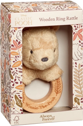 Ta urocza grzechotka z główką Kubusia Puchatka na gładkim drewnianym kółku zachwyci maluszki delikatnym dźwiękiem i mięciutkim dotykiem. Ergonomiczny kształt wspiera naturalny chwyt dziecięcej rączki oraz rozwój motoryki małej.