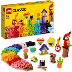 Ten uniwersalny zestaw zawiera ikoniczne klocki w bogatej palecie barw, w tym legendarną kostkę 2×4. W komplecie przejrzysta broszura z instrukcjami budowy zabawnych modeli oraz wskazówkami, jak inspirować dzieci do własnej twórczości. Cyfrowe instrukcje dostępne są również w aplikacji LEGO Builder.