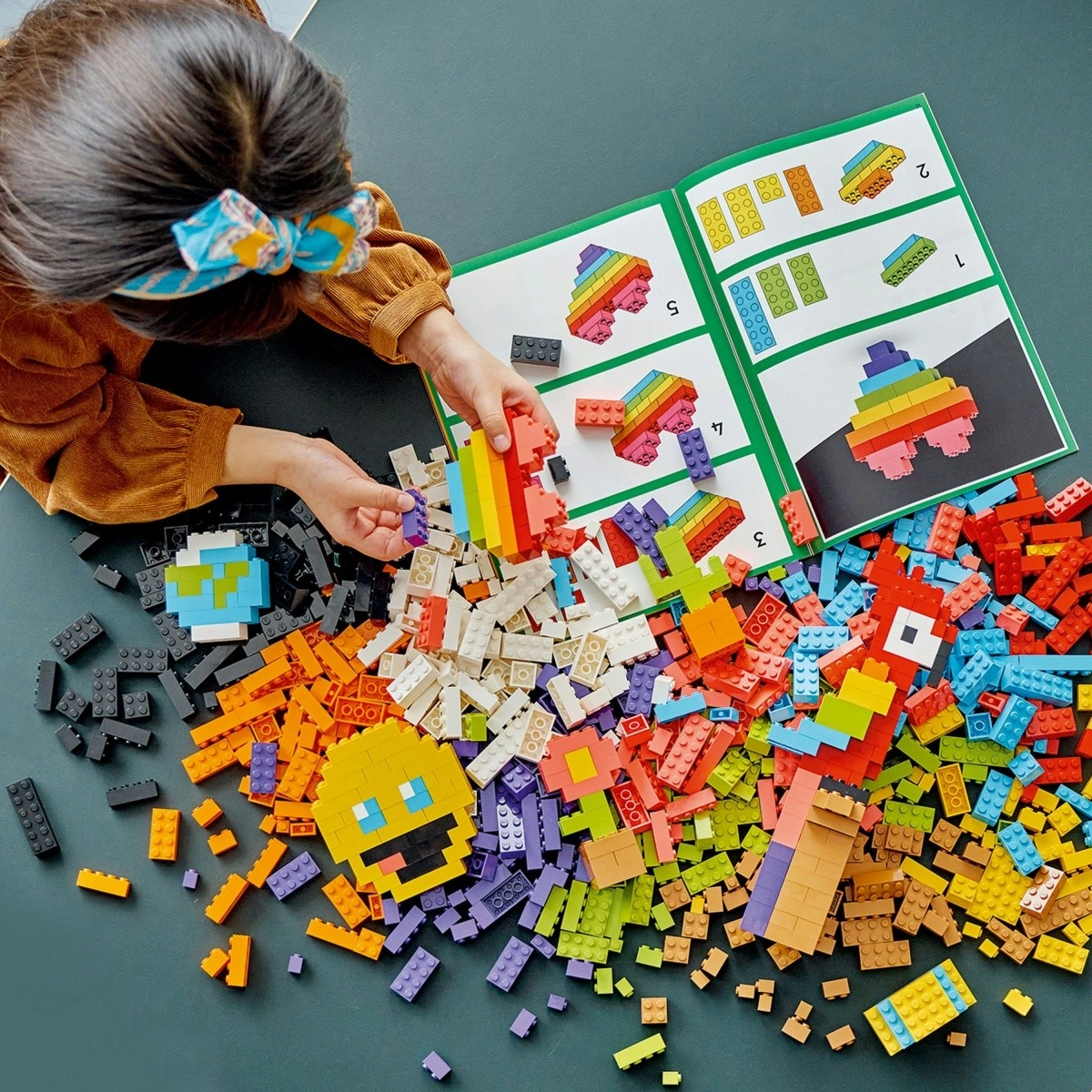 Broszura z jasnymi krokami oraz cyfrowe instrukcje pomogą dzieciom zbudować samochód, globus, kwiat, papugę, emoji i wiele innych zabawnych modeli.
