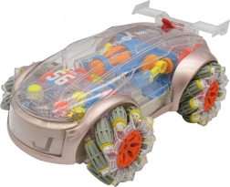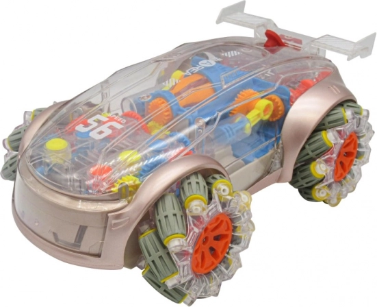 Przezroczyste nadwozie odsłania kolorowe koła zębate i ruch wewnętrznych elementów – atrakcyjne i pouczające.