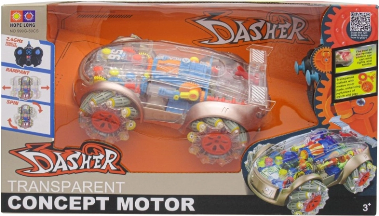 Przeżyj adrenalinową zabawę z tym samochodem RC z przezroczystą karoserią, która odsłania pracujące przekładnie. Oferuje efekty świetlne i dźwiękowe, realistyczny efekt dymu na bazie wody, ruch wielokierunkowy w tym boczny drift oraz niezawodne sterowanie 2,4 GHz o zasięgu do 30 m.