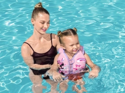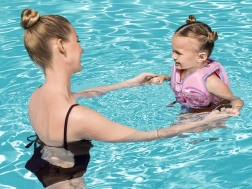 Zintegrowane panele piankowe pomagają utrzymać dziecko na powierzchni bez konieczności nadmuchiwania i pozwalają na naturalny zakres ruchu podczas nauki pływania.