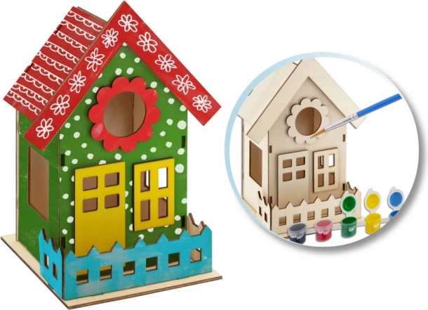 Stwórz własny raj dla ptaków z tym kreatywnym zestawem. Drewniany domek dla ptaków 3D łatwo złożysz i ozdobisz dołączonymi farbami. W zestawie znajduje się drewniany domek, 6 kolorów farb, klej i pędzelek – wszystko, czego potrzebujesz do świetnej zabawy w ogrodzie i w domu.