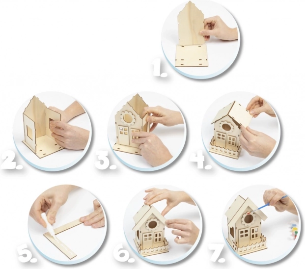 Wskazówka: Aby wydłużyć trwałość gotowego domku, po pomalowaniu zalecamy zabezpieczyć go bezbarwnym lakierem do użytku na zewnątrz.